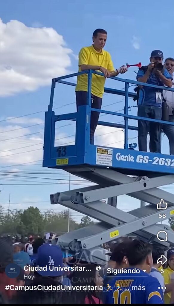 Aun así, alguien tomó la decisión de subir al rector a la plataforma, a cielo abierto, rodeado de estudiantes, en un espacio que dependía de un equipo diseñado para otro entorno. No se trata de una simple imprudencia: es una cadena de irresponsabilidades.